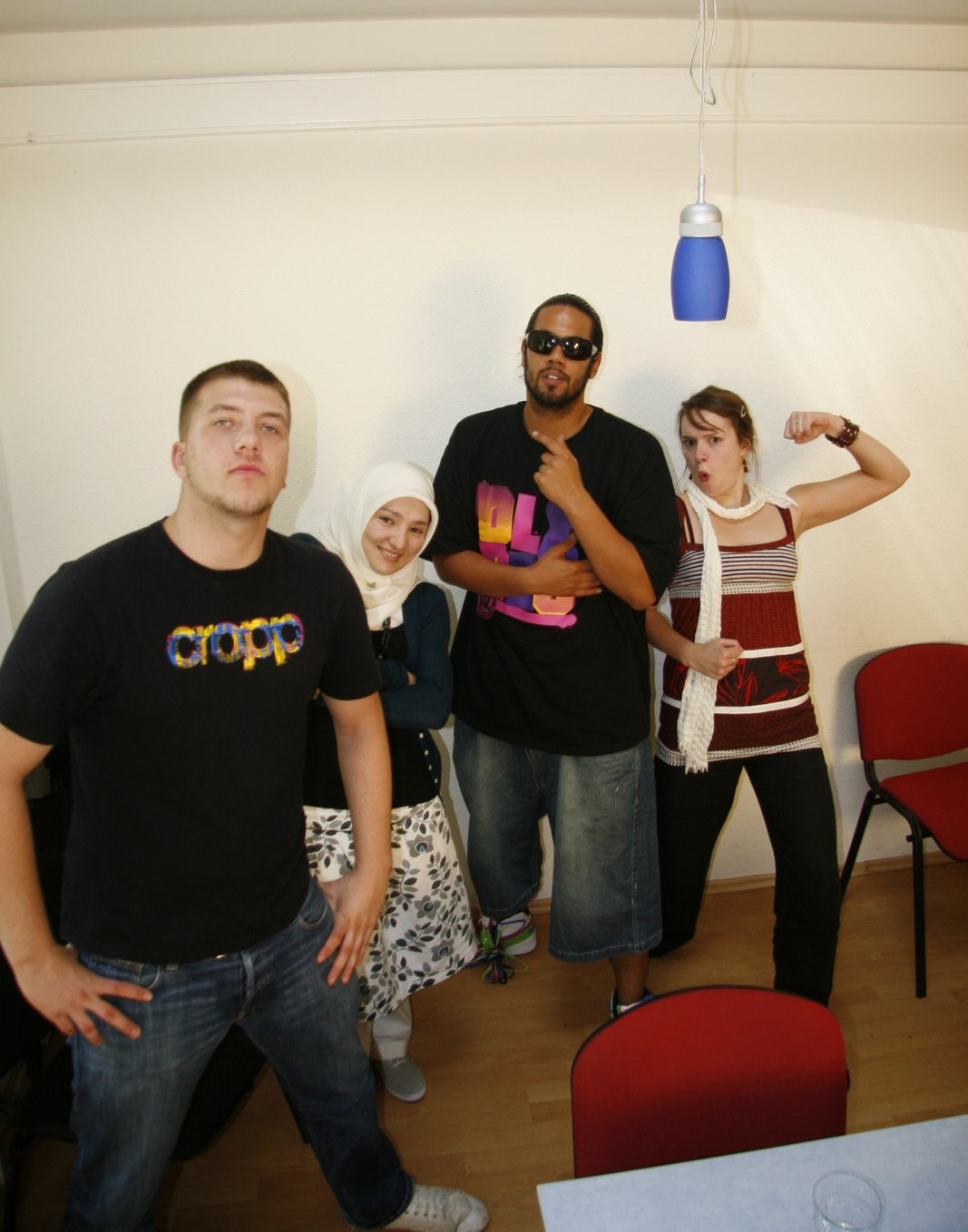 Zu sehen in Gangster-Pose: Oign (hinter der Kamera), sein Bruder Ahläx, ich, Sämi Delühks und Ex-Freihafen-Chefköchin Miehrte.